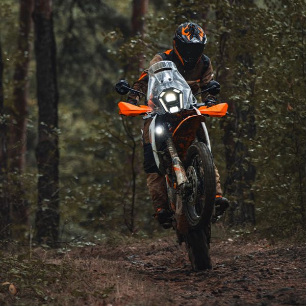 Dobbiamo ammetterlo: la KTM 390 ADVENTURE R è la moto da avventura di peso medio più adatta al fuoristrada del suo segmento. Sì, è un'affermazione audace, ma con un propulsore da 399 cc, un design ispirato ai rally, sospensioni regolabili da 230 mm e una ripartizione delle ruote di 21/18"", questa nuova aggiunta alla scuderia KTM R riscrive semplicemente il libro delle regole.