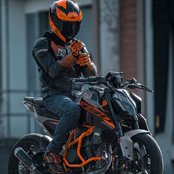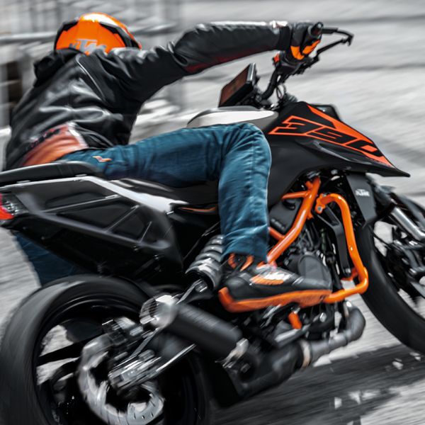 Con la KTM 390 DUKE, il mondo che ti circonda diventa la tua personale gimkana. Con un'agilità eccezionale, una maneggevolezza leggera e prestazioni incisive, questa moto di peso medio è pronta ad affrontare qualsiasi curva. Con aiuti al pilota all'avanguardia, un telaio completamente nuovo, sospensioni regolabili e un nuovo look aggressivo, la KTM 390 DUKE indossa la corona quando si tratta di tagliare l'asfalto.