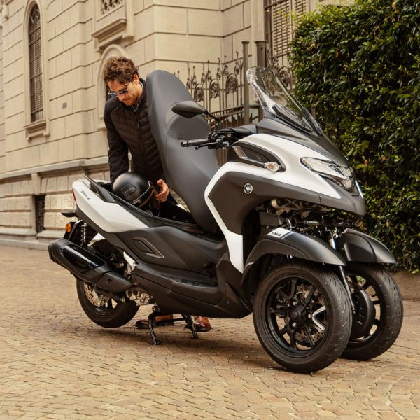 Tricity 300 è pronto a cambiarti la vita. Perché questo scooter a 3 ruote offre una sensazione di stabilità e confidenza e, essendo il modello più leggero ed elegante della categoria, è il modo più intelligente di muoversi in città. E la buona notizia è che puoi guidarlo anche con la tua patente B*! (*Potrebbero sussistere limiti e restrizioni a seconda delle leggi dei diversi Paesi. Inoltre, Yamaha consiglia a tutti i motociclisti di frequentare un corso di formazione motociclistica prima di guidare un qualsiasi veicolo a due o tre ruote).